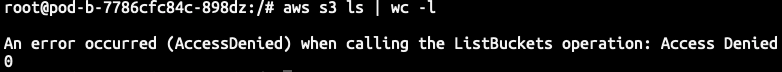 pod-b에서는 권한이 없어서 에러 발생 위와 같은 방식 파드 별로 IAM 권한을 할당하여 조금 더 안전한 EKS 클러스터를 구성할 수 있습니다.